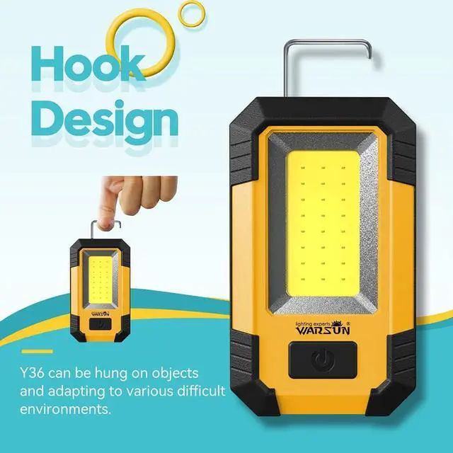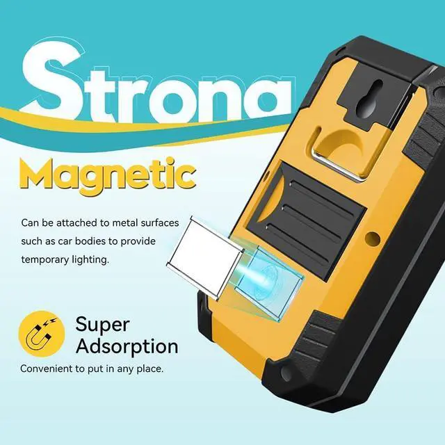Convenient Hook And MagnetFeaturing a built-in super-strong magnet, this magnetic work light easily attaches to metallic surfaces like car bodies, providing convenient lighting. The hook design allows the magnetic light to be hung on objects like tents for hands-free illumination.