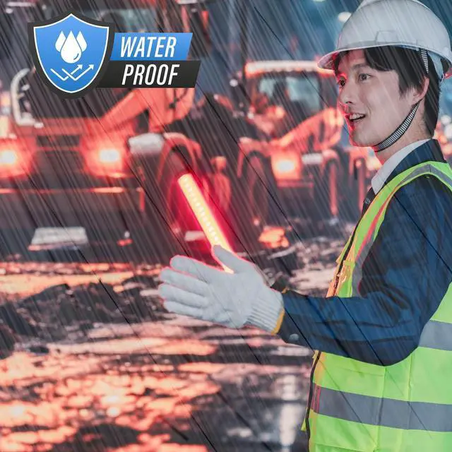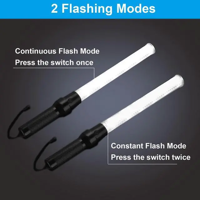 Made of sturdy PVC shell, lightweight and thicker than ordinary led traffic wands, with shock resistance and translucency. Waterproof for work stably on rainy days. With 2 flashing modes, continuous flash mode and constant light mode can meet your different needs. Anti-slip handle avoids falling and comfortable hold. With a wrist strap lanyard, conveniently wrap it around your hand to avoid falling and easy to carry.