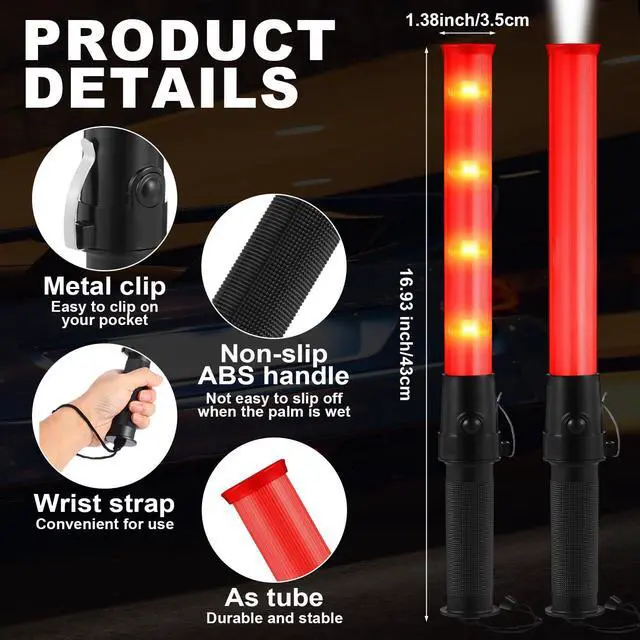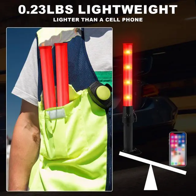 Wide application: the hand-held traffic conductor LED light stick can be an indicator for parking or other traffic commands, also can be applied for traffic controls, emergency alerts, parking guides, safety flashing lighted glow wand, air traffic control flashlight, construction crews, etc