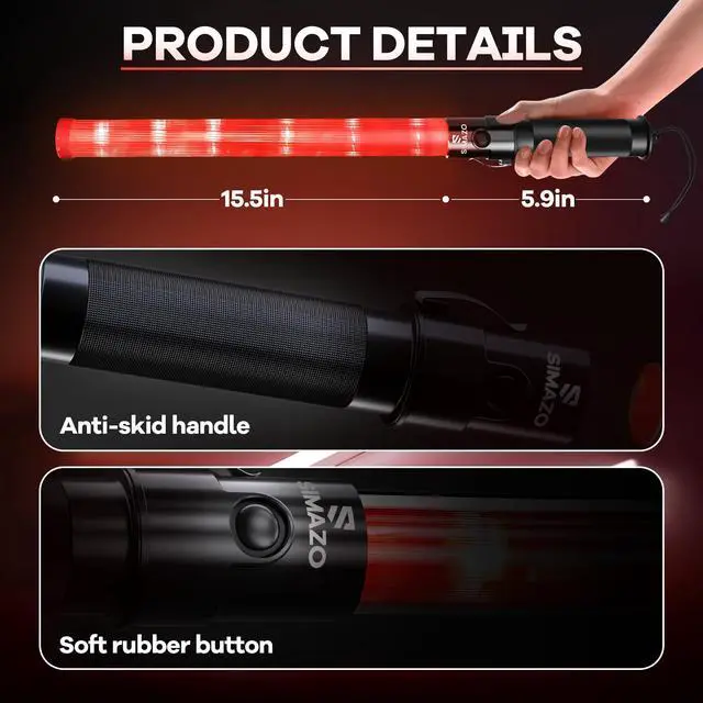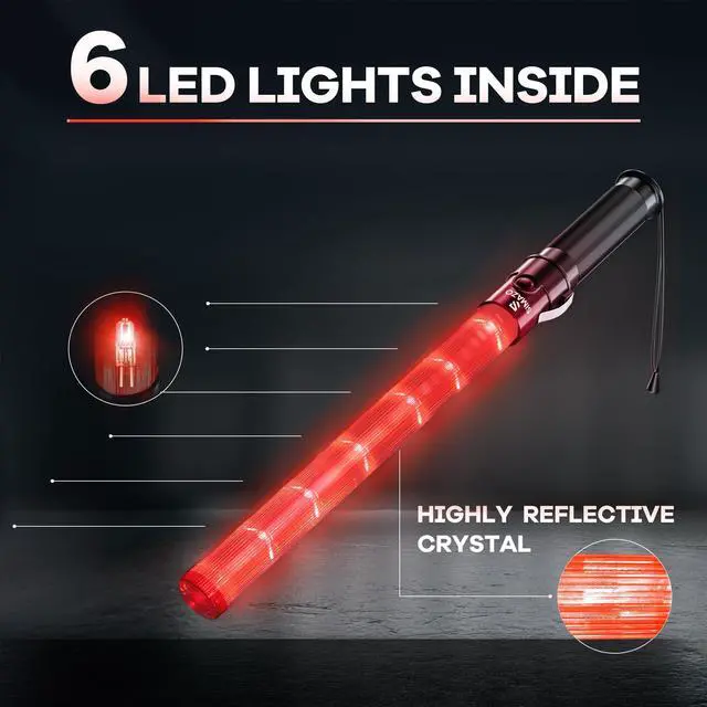 The 21inch long traffic wand has 6 lights inside which can provide great visibility, easier for the drivers to follow.
