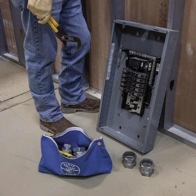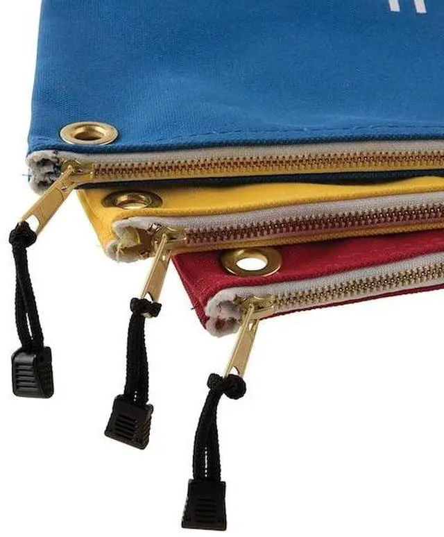 The large canvas zipper bags are ideal for storing large hand tools and materials. They have a 3.5" (89 mm) wide bottom which gives them stability, allowing them to stand up and stay open for easy access when open.