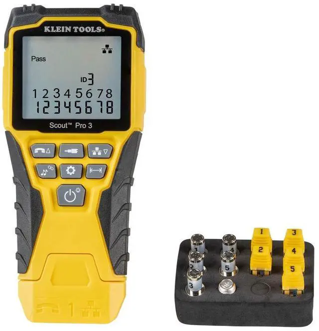 BACKLIT LCD DISPLAY: Backlit LCD screen displays cable length, wiremap, cable ID, and test results, ensuring easy readability in various lighting conditions