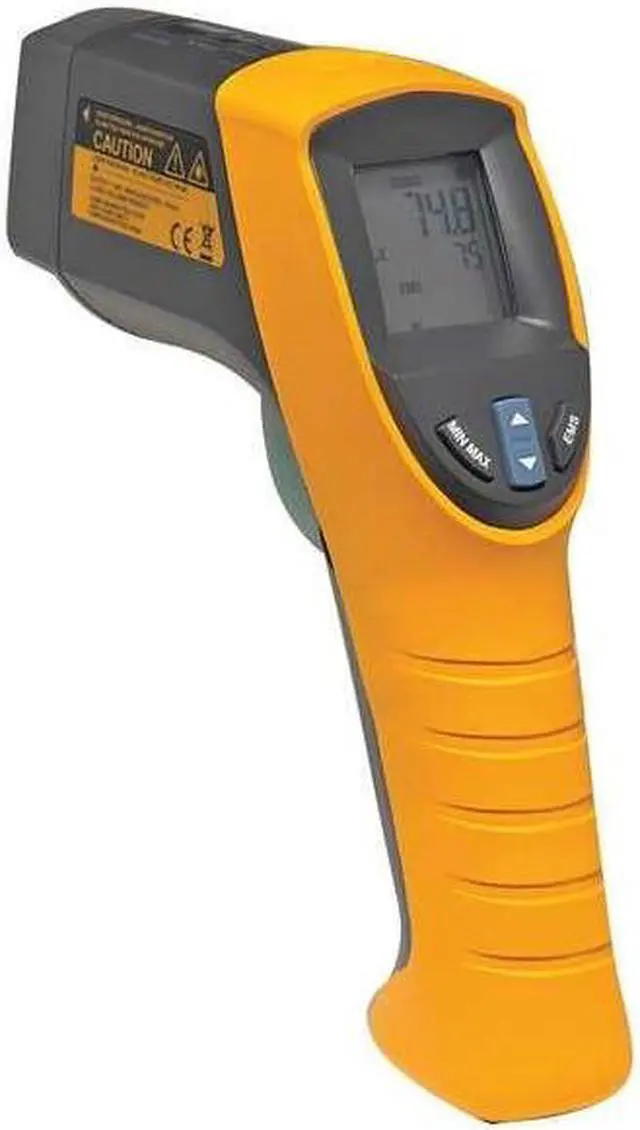 Infrared Thermometer, Laser Sighting Type Single Dot, Secondary Measuring Method Type K Thermocouple, Emissivity Adjustability Adjustable, Distance To Spot Ratio 12:1, Alert Type Digital Display, Field of View Not Applicable, Minimum Emissivity Setting 0.30, Maximum Emissivity Setting 0.95, Minimum Temperature Measured Degrees F -40 Degrees F, Maximum Temperature Measured Degrees F 1, 022 Degrees F, Minimum Operating Temperature Degrees F 32 Degrees F