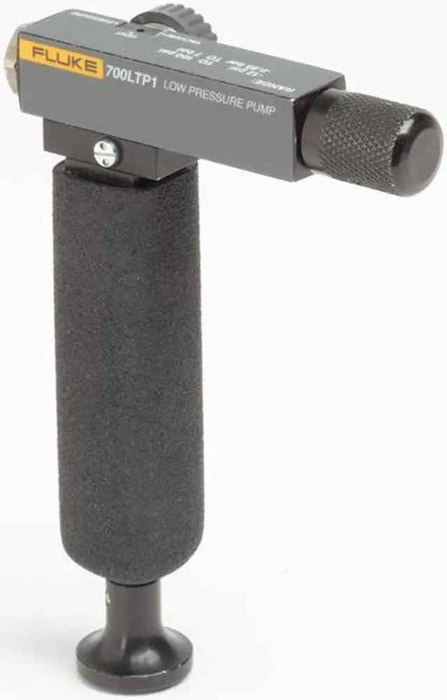 Low Pressure Test Pump, For Use With Fluke 700 Series Pressure Modules and Fluke 717 Series Calibrators, Function Low-pressure, 0 to 100 psi, Features Adjustable Pressure Relief Valve with Slow-Bleed Capability, Allows the Slow Release Pressure at a Controlled Rate, Pump can be Easily Cleaned without Disassembly, Includes (2) Adapters to Convert the Reference and UUT Port Hose Fitting to 1/4 In. BSP Female, One Seal Kit. This item has been restricted from sale in the following state (s): []