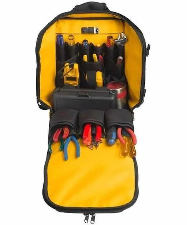 Fluke Pack30 - Professional Tool Backpack Over 30 pockets in six main storage compartments Rugged, waterproof bottom base protects tools, keeping the backpack upright for easy access to tools Clips, brackets and straps on the outside of the Fluke Pack30 for frequently used tools such as tape rolls, measuring tapes, voltage detectorsThe Fluke Pack30 is designed for the professional electrician. Over 30 pockets, plus a rugged, waterproof base keeps tools dry and the backpack standing. Backpacks offer a convenient method for organizing, storing, and your carrying tools. Keeping all the tools you need in a single Fluke Pack30 means fewer trips back to the truck.
