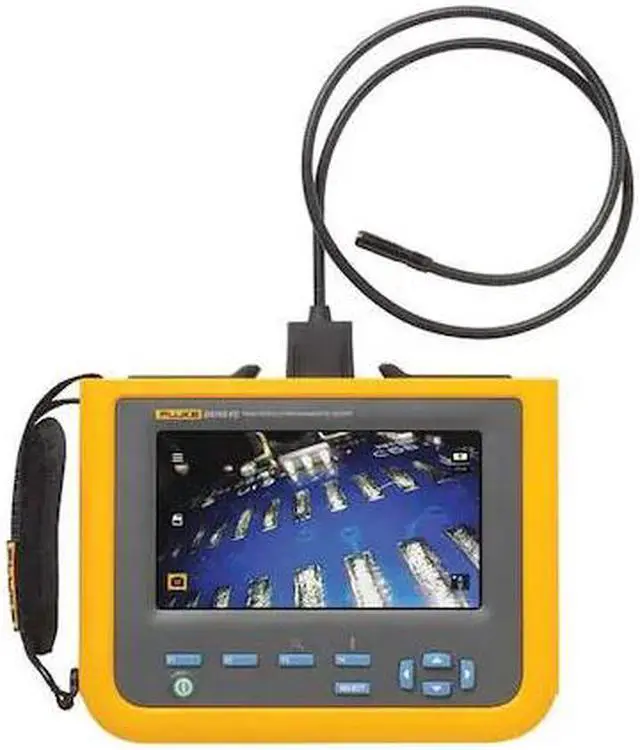 Fluke DS703 - Diagnostic Videoscope with FC High Resolution Diagnostic Videoscope with FC Resolution of 1200 x 720 (864, 000 Pixels) 720p Video Resolution Dual view probe 7 LCD screen Intuitive user interface with easy to navigate button technologyThe benefits of a videoscope are well known. But Industrial inspections require a powerful diagnostic videoscope designed to stand up to the dirtiest, most harsh environments. Fluke Diagnostic Videoscopes put high-resolution images in the palm of your hand. High definition probe with dual-view camera Processing speeds that render a smooth, clear, consistent image 7 LCD screen for easy viewing Macro to micro zoom function Adjustable lighting to capture the best image True 720p videoApplicationsIndustryMaintenance manager Corrosion in rotors and stators Equipment part Ndegrees- Cable pulley/pulley slots condition Liquid channel inspection
