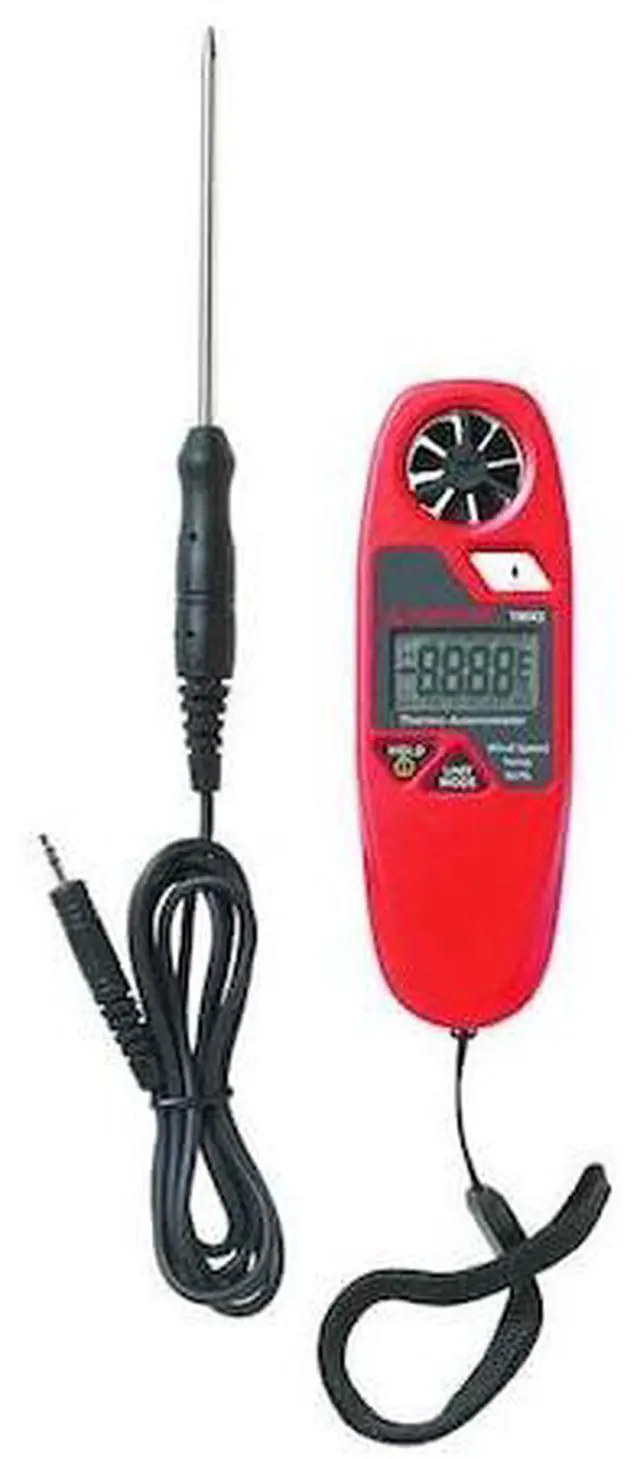 Anemometer, Rotating Vane and Thermistor Sensing Method, Data Logging No, Humidity Sensing Yes, Velocity (FPM) 60 to 3937, Velocity (MPS) 1.1 to 20, Velocity (MPH) 0.5 to 44.7, Velocity (KPH) 0.7 to 72, Velocity (Knots) 0.4 to 38.8, Air Velocity Accuracy +/-5 Percent, Temp. Range 32 Degrees to 122 Degrees F, Relative Humidity Range 5 to 95 Percent, Data Hold Yes, Auto Power Off Yes, Includes Battery, Carrying Pouch, Wrist Strap and Instructions. This item has been restricted from sale in the following state (s): []