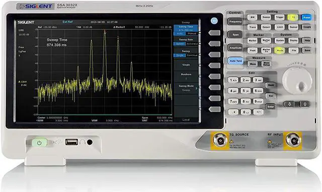 Siglents SSA3000X family of spectrum analyzers offer a frequency range of 9 KHz to 2.1 / 3.2 GHz. With their light weight, small size, and friendly user interface, the SSA3000s present a large, bright easy to read display, powerful and reliable automatic measurements, and plenty of impressive features. Applications include research and development, education, production, maintenance, and pre-compliance testing.