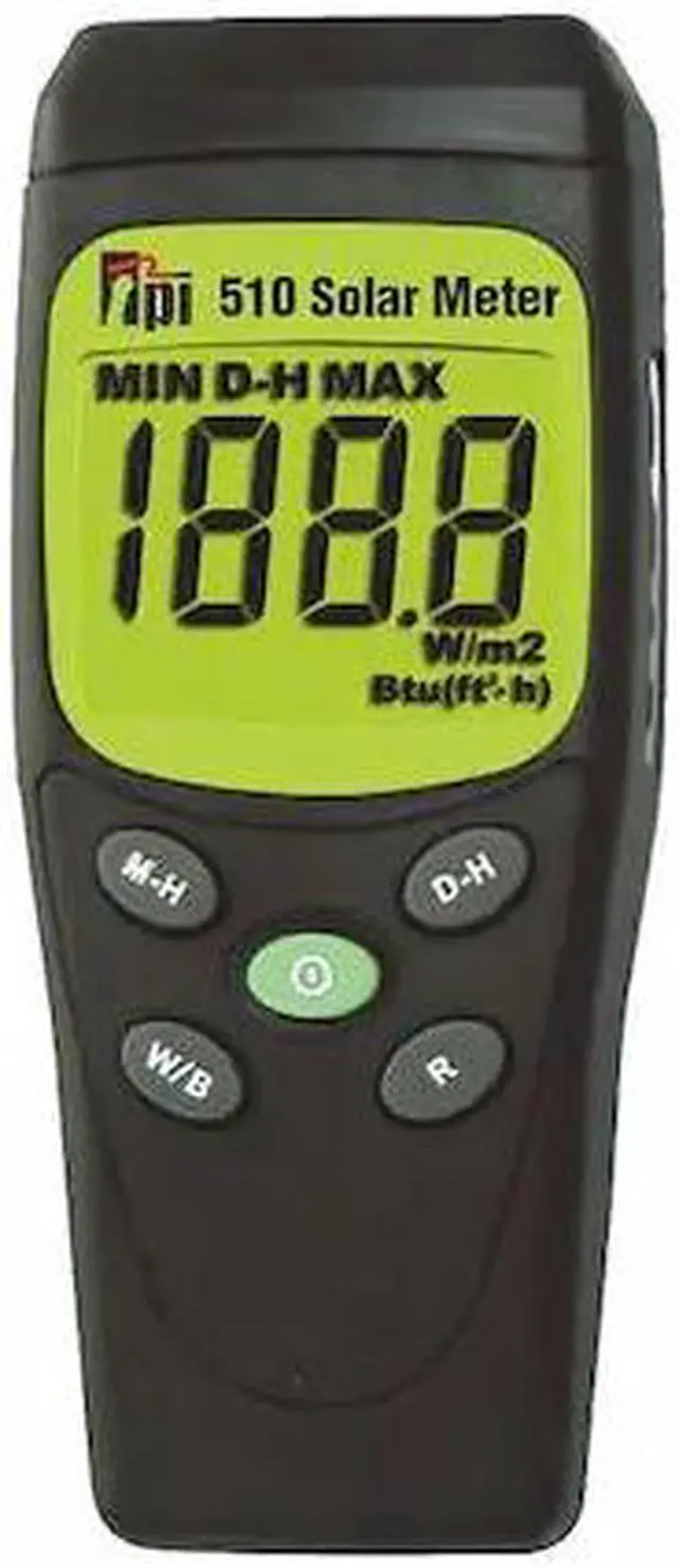 Irradiance Meter, Irradiance Measurement - Minimum 0 W/sq m, Irradiance Measurement - Maximum 1, 999 W/sq m, Compass Bearing Range 0 Degrees to 360 Degrees, Inclination Measurement - Minimum 0 Degrees, Inclination Measurement - Maximum 360 Degrees, Display LCD, Datalogging No, Includes Carrying Case, Number of Batteries 1, Irradiance Resolution 1 W/sq m, Temperature Measurement - Maximum 104 Degrees F, Temperature Measurement - Minimum 41 Degrees F, Includes Batteries Yes. This item has been restricted from sale in the following state (s): []