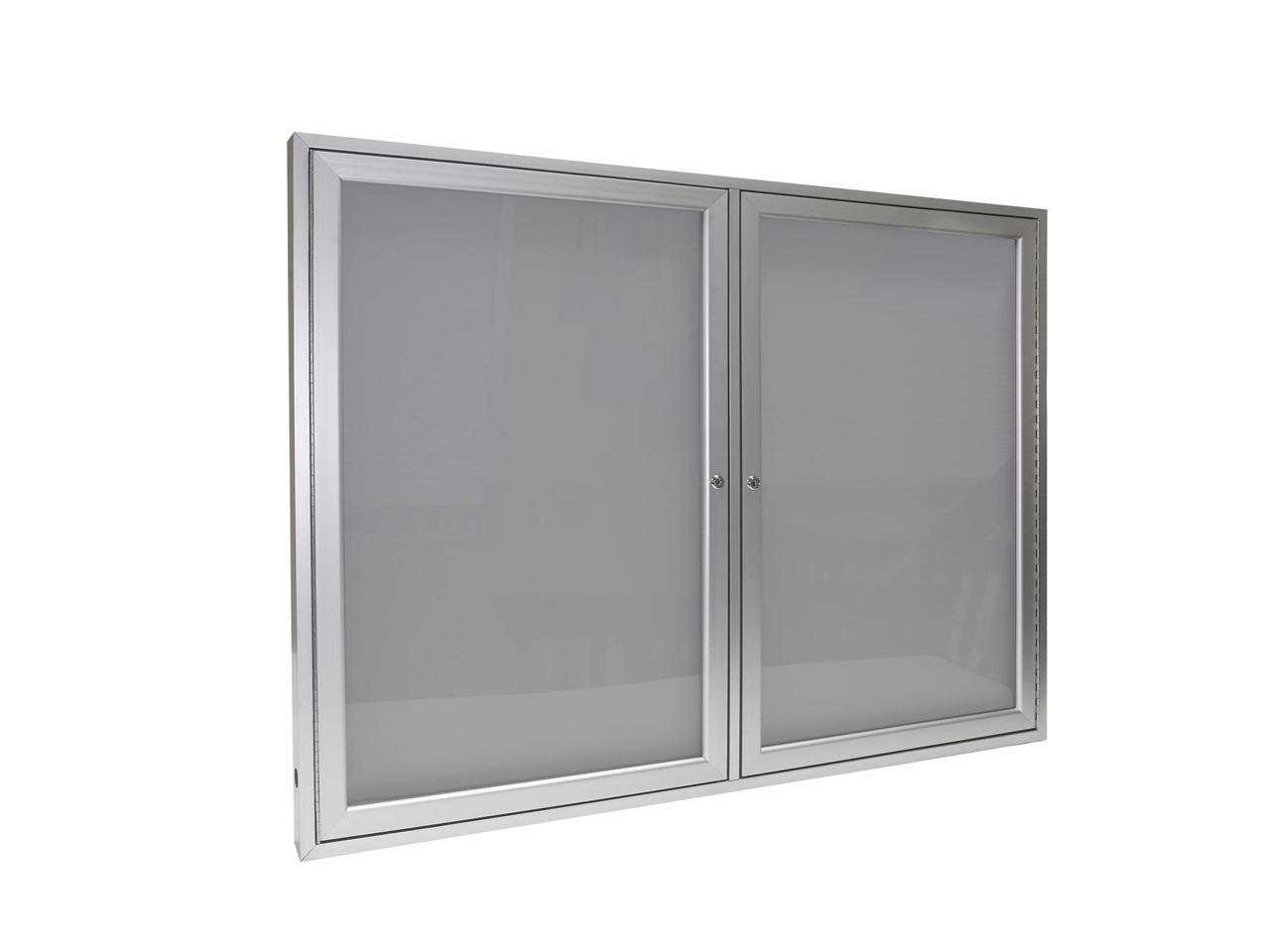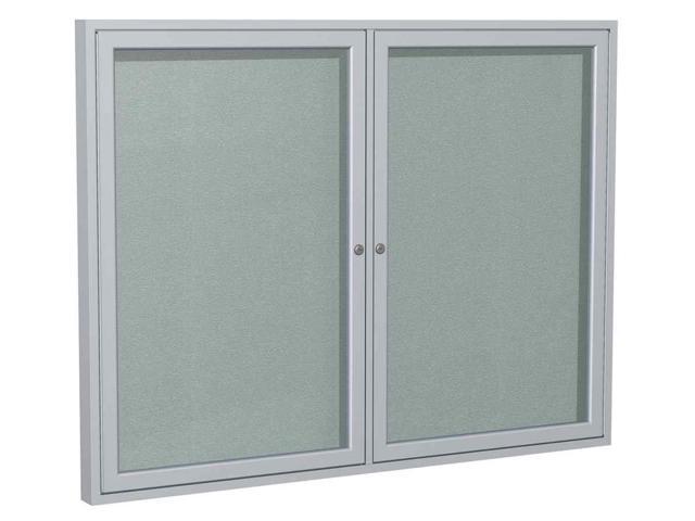 Ghent PA23660VX-193 2 Door Enclosed Vinyl Bulletin Board with Satin Frame - 60" x 36" - Silver Surface, Satin Aluminum Frame
