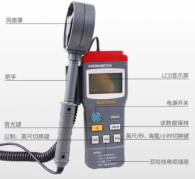 MASTECH MS6250 Anemometer Professional Digital Air Velocity Tester Air Wind Speed Meter Measuring Tool