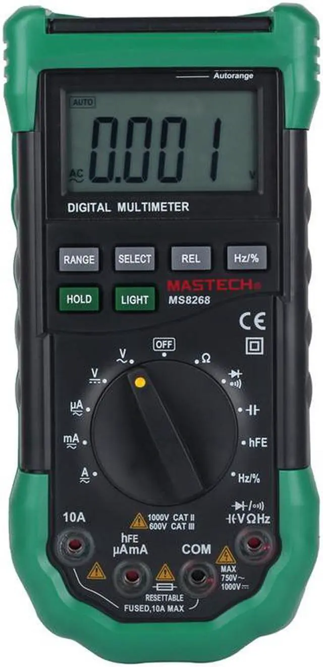 This MS8268 is a fully featured digital multimeter. It is capable of most standard functions including AC/DC Voltage and Current, Resistance, Capacitance, Frequency, Temperature and more. It's also packed with many nice features, such as back light, data hold, reset table fuse. No matter you are a professional or just a DIYer, this is a great and affordable tool for your daily use.