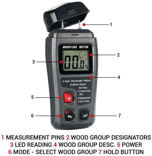 • Moisture Range: 0~99.9% for Wood