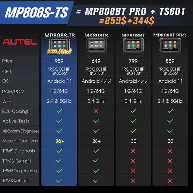 - Autel MP808S-TS has upgraded to cover more vehicles than MP808TS.