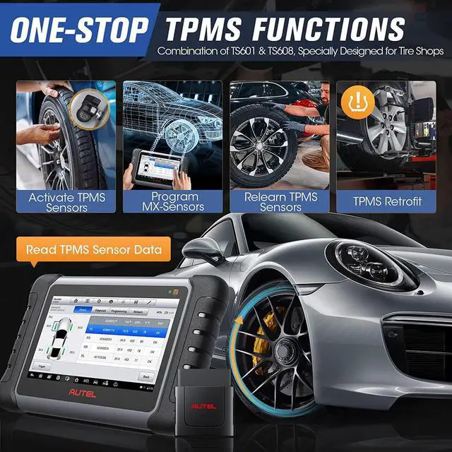 - TPMS Sensor Activation-Activate/Trigger 99% of TPMS Sensors Wirelessly: Autel TPMS tool MP808S-TS can activate 99% of TPMS sensors (315/433MHz), including the OE sensors, Autel MX-sensors, and other sensors in the market.