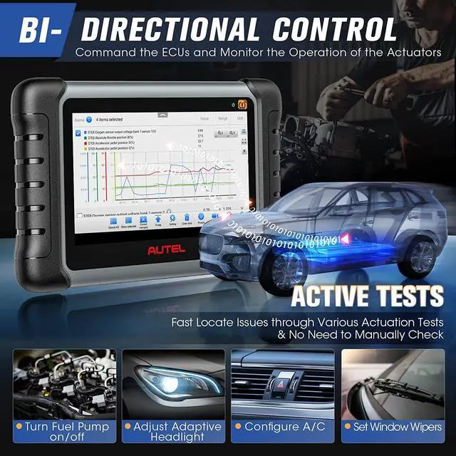 Featuring bi-directional control, this Autel intelligent diagnostic tool - Autel MP808S-TS, can output the commands to ECUs, read the ECU data and monitor the operation of the actuators. Through active tests, also called actuator tests, this bi-directional diagnostic scanner can precisely locate car problems.
