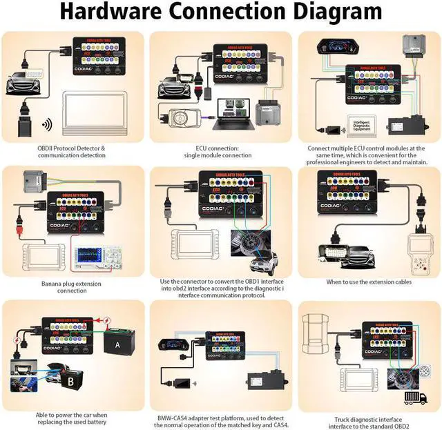 - ECU Connection or Multiple Vehicle ECU Module Connecting: Connecting the single or multiple ECU control modules at the same time, GT100 OBDII Breakout Box is good helper for programming and diagnosing.