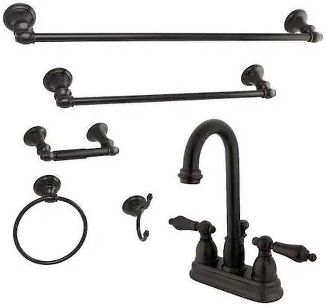 California Proposition 65: This product contains a chemical known to the State of California to cause birth defects or other reproductive harm. The exquisite design of this faucet tastefully flatters the elegant architecture of traditional homes with its fine detailing. Centerset bathroom faucets are ideal for smaller bathrooms and feature an easy 3-hole installation. The Kingston Brass 4-inch centerset bathroom faucet with 5-piece bathroom accessories and its featured sturdy brass construction and premium oil rubbed bronze finish are guaranteed to glamorize your home's traditional ensemble for years to come. A matching finish drain is also included.