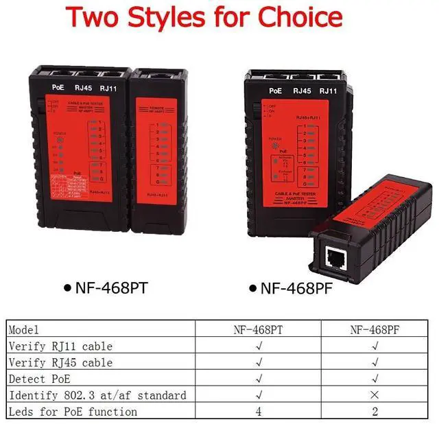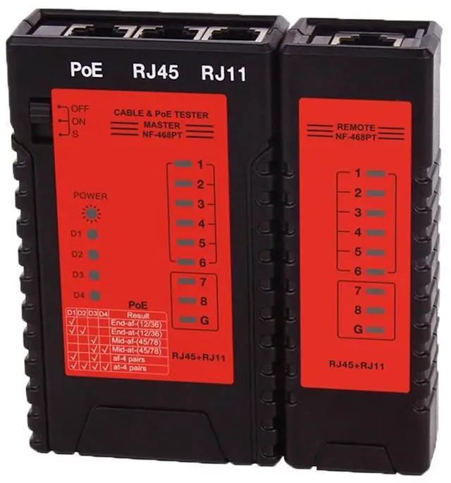 NF-468PT Network Cable Tester RJ45 RJ11 PoE Switch Tester for Ethernet LAN Cable Landline Phone Wire Testing