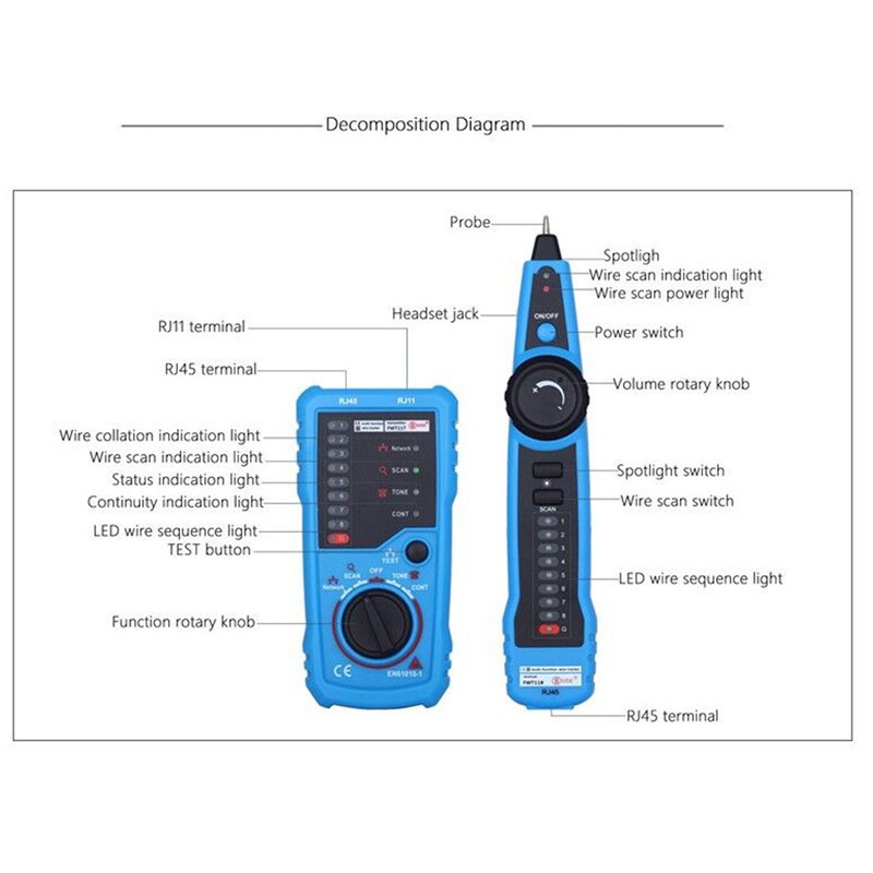 Wire Tracker, RJ11 RJ45 Cable Tester Line Finder Multifunction Wire Tracker Toner Ethernet LAN Network Cable Tester for Network Cable Collation, Telephone Line Tester, Continuity Checking