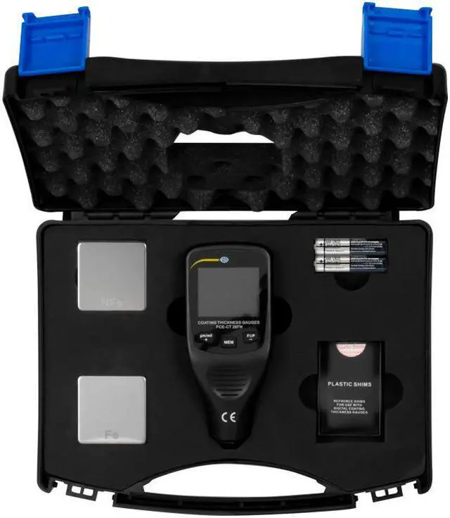 The coating thickness gauge PCE-CT 26FN can measure non-destructive coatings (paints, plastics... ) on steel / iron and non-ferrous metals. The coating thickness gauge is ideally suited, for example, to detect accidental damage to the vehicle immediately. But also in the industrial sector, the PCE-CT 26FN coating thickness gauge is used for incoming and outgoing inspection in order to be able to offer consistently consistent product qualities.
