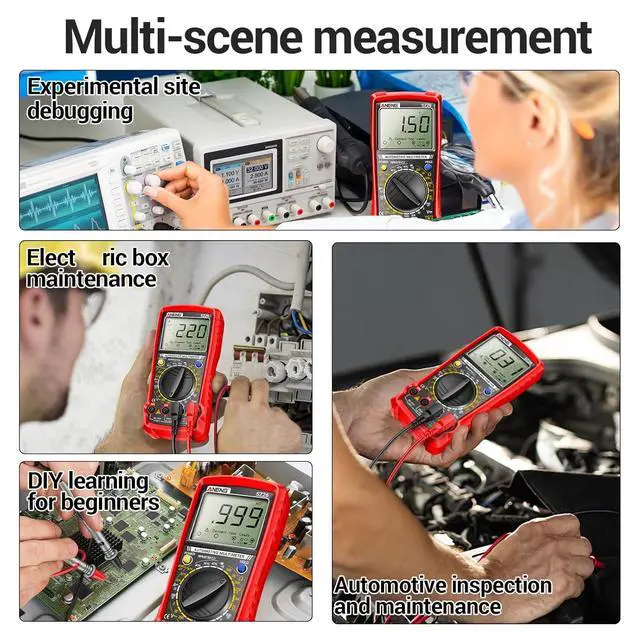 User-Friendly Display: automotive multimeter features a large clear LCD that ensures easy readability,even in low-light conditions.The intuitive interface allows users to quickly access different measurement modes and view precise readings at a glance