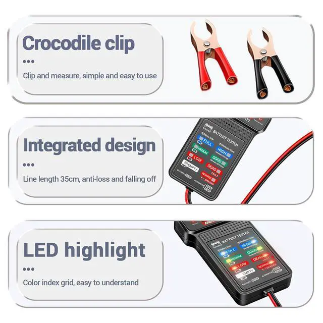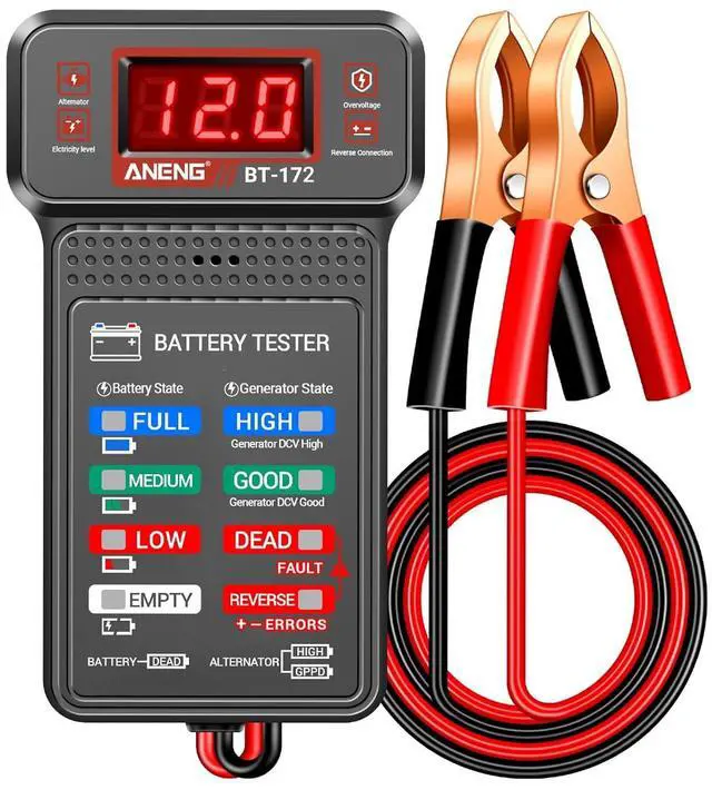 Reliable 12V battery tester for cars, motorcycles, trucks, RVs, boats, ATVs and more, with 0.01V high accuracy.