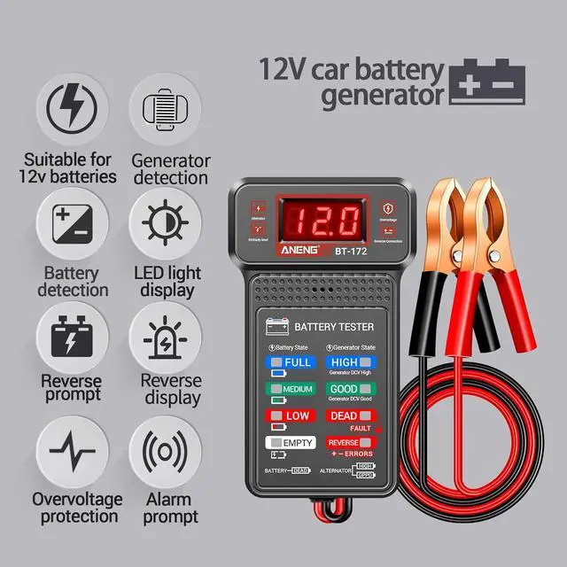 We've Got You Covered: Each package includes BT172 battery tester, alligator clamps plug adapter cable, and a user manual. electrical tester provides service and technical support.Buy with confidence!