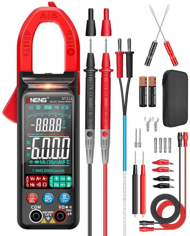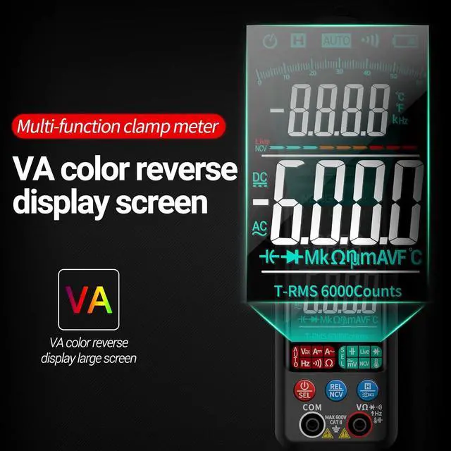 Clamp Meter Multimeter Tester Auto Ranging TRMS 6000 Counts AC/DC Current Voltage Ohm Volt Amp Meter Meansures NCV Continuity Diode Resistance Capacitance Null/Fire Wire Electrical Tools