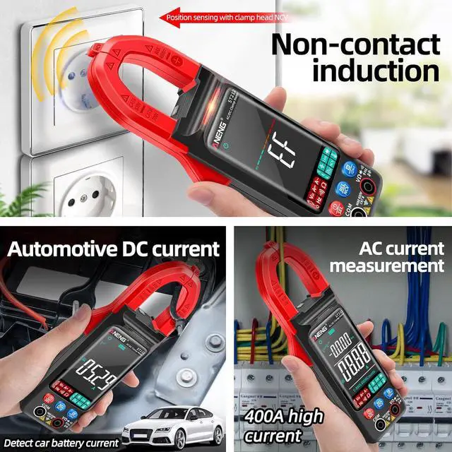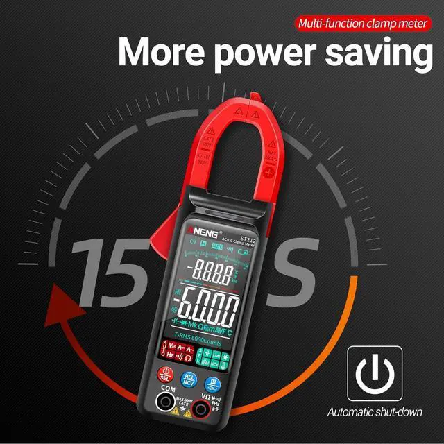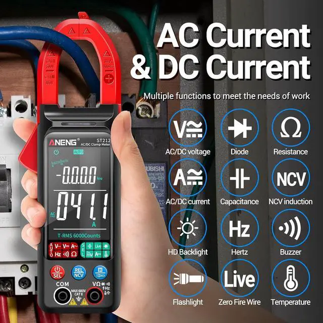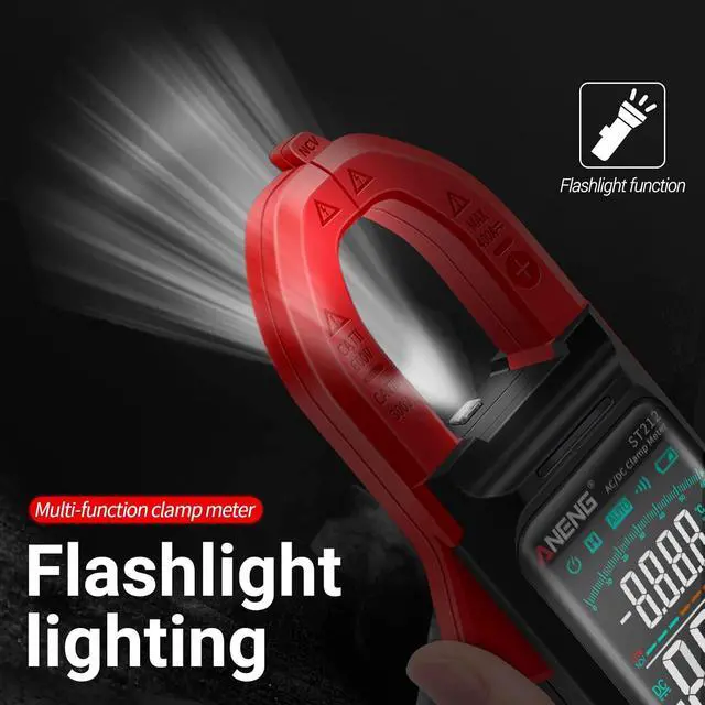 2. Accuracy & Multi-functionAneng multimeter can measure ac/dc current, ac/dc voltage, live/zero wire,serve as continuity, resistance, and capacitance tester. It can also measure non-contact voltage detection and buzzer alarm,temperature, frequency, and duty cycle with less error & more accuracy. Backlight LCD screen and clamp head lighting with one hand use trigger, its easy to use even if the ambient light is too dark.