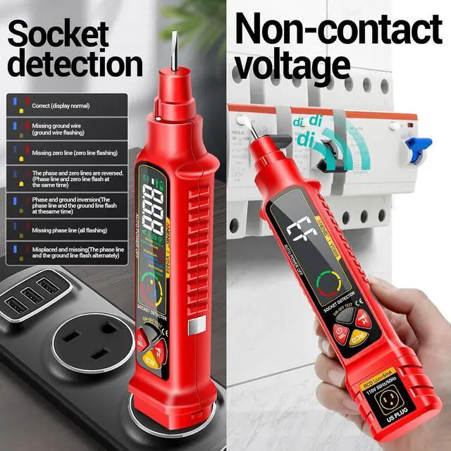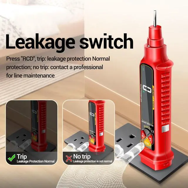 Safe & VersatileVD808 volt meter is suitable for checking circuit breakers,lighting equipment,switches and sockets,and it is the safest way to check for electrical leakage. It clearly displays socket wiring status and is ideal for checking breakers, lights, switches, and sockets. A safe and professional tool for detecting wiring faults and electrical leakage,is compact and portableeasy to carry in your pocket or bag