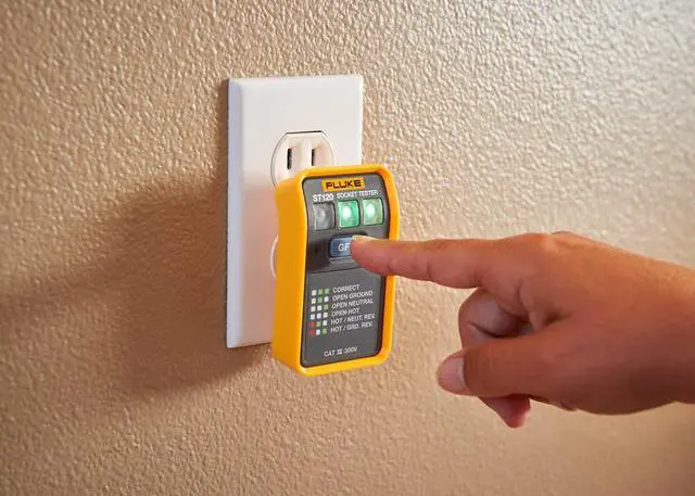 Integrated GFCI test button to verify the correct operation of GFCI equipped outlets