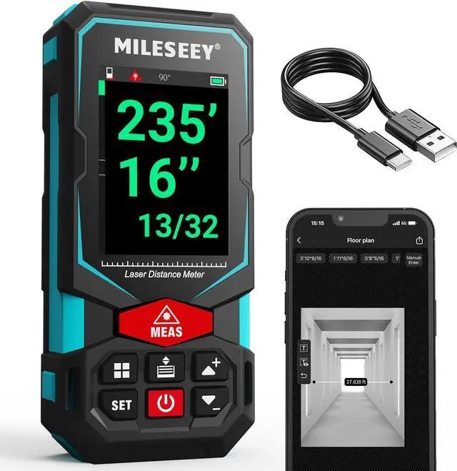 Multiple measurements features: The Mileseey S7 laser measuring instrument offers an impressive collection of 15 measurement modes, including trapezoid measurement and stake-out measurement, alongside conventional modes like area, volume, continuous measurement, and the Pythagorean theorem. The diverse measuring features cater to the various requirements of engineers, making it a valuable time-saving tool for swiftly measuring large houses, rooms, or backyards.