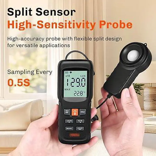 Split Sensor Design: High-sensitivity probe measures light from any direction without obstructionideal for plants, photography, and indoor lighting inspection.