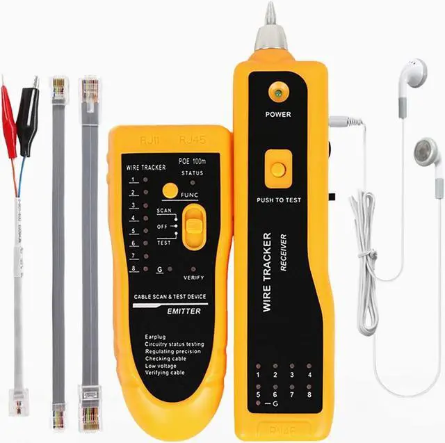 Tracking Function: Fast to locate the breakpoint, Find wire on all types of connected operating Ethernet switch /Router/PC terminal. Perfect for tracking RJ11, RJ45, cables or other metal wire (via adapter); Network & Telephone Line Test Function: The Line Finder testes physical connection status of network cable, such as open circuit, short connection, miswire and reverse connection.