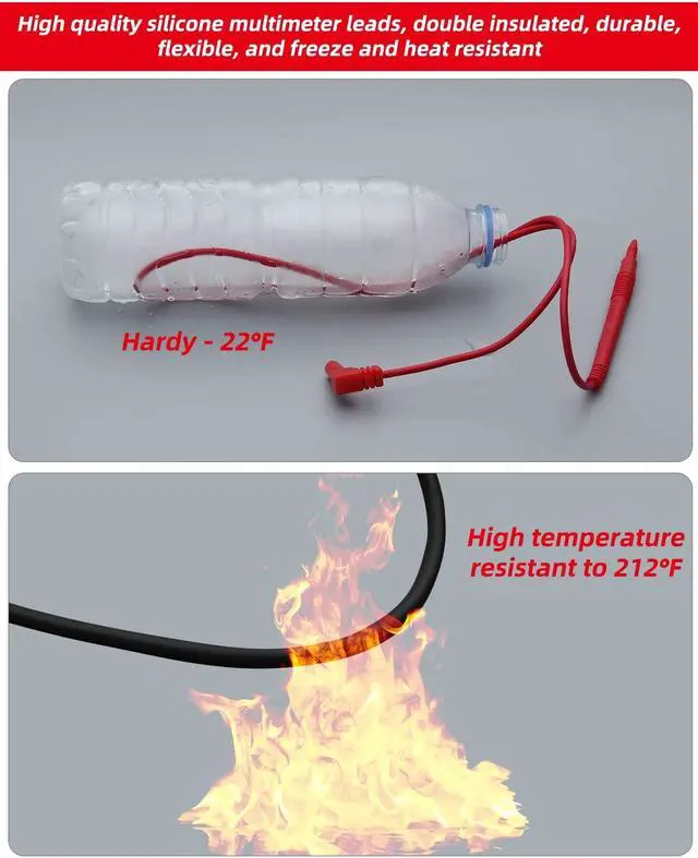 Ergonomic design: The silicone insulated test lead handle is designed with non-slip with rounded protrusions for comfort and safety