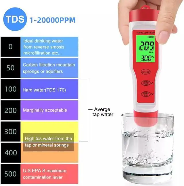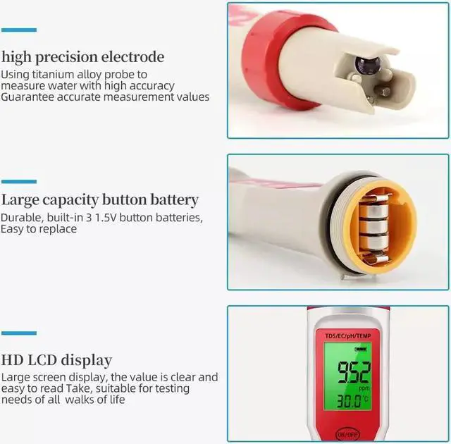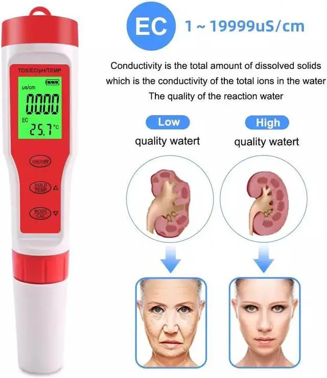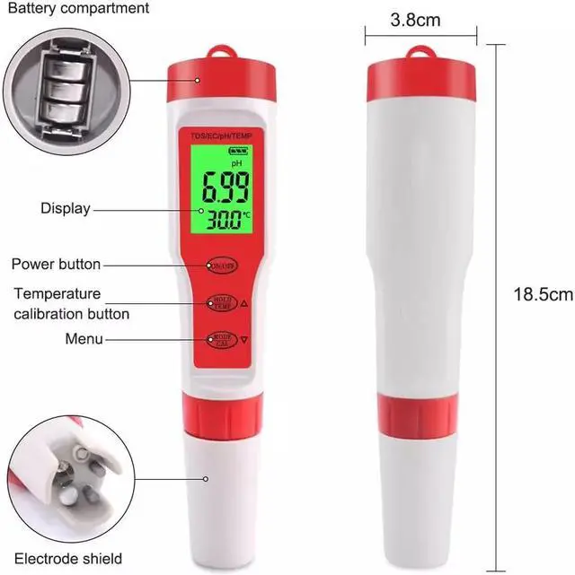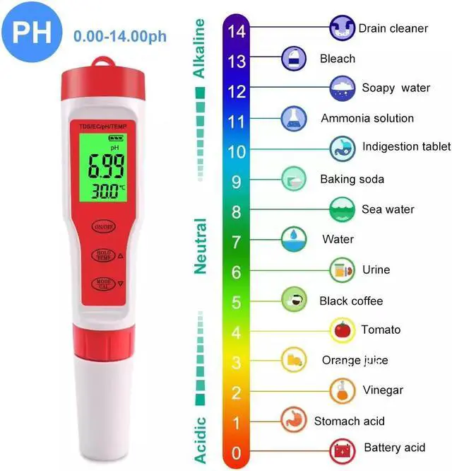 --: 4 in 1 pH meter can test pH, EC, TDS levels and temperature of pH up and down in hydroponics to know your water is in the perfect range for maximum nutrient uptake. The multi-function pH meter for water makes it worry-free and convenient to use. A great pH meter that meets the needs of any serious grower.