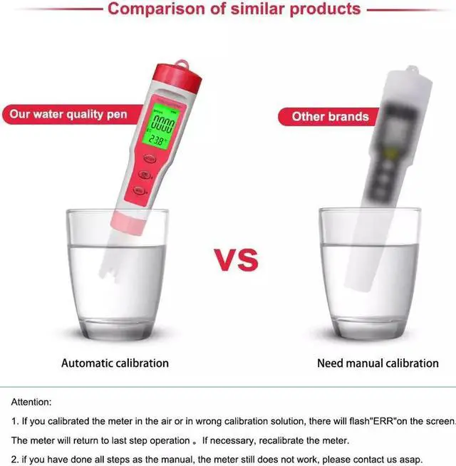 : With high sensitivity glass probe, you can get a full measuring range of 0-14pH, 0.01 pH resolution. The pH meter uses a 3-point calibration method to calibrate the electrode to pH 4.00, pH 6.86 and pH 9.18 solutions. You can easily calibrate to ensure the accuracy of your measurements.