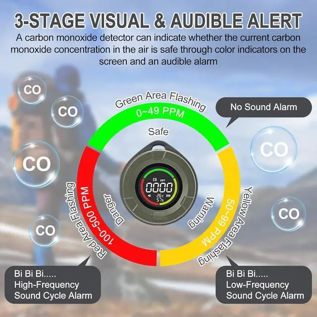 Outdoor Lanyard and Magnetic AttachmentThis travel-friendly carbon monoxide detector can be placed anywhere, such as on a table in the living room, kitchen, or bedroom. It also comes with a convenient outdoor lanyard for easy carrying during travel, camping, picnics, and outdoor adventures. Additionally, the magnetic backplate allows you to attach it to any metal surface, such as appliances or cars