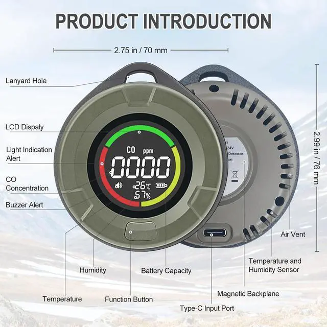 Shop with ConfidenceYour satisfaction is our top priority. If you have any questions, please contact us, and we will respond within 12 hours. Enjoy risk-free shopping with us. You will receive a rechargeable carbon monoxide detector, a Type-C charging cable, a lanyard, and a user manual