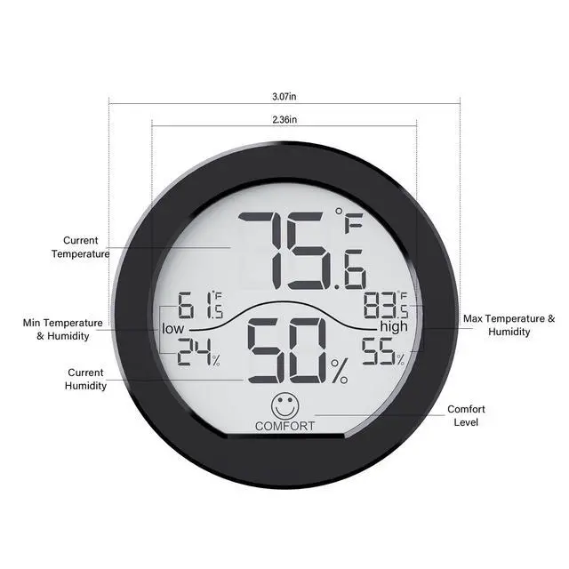 Our thermometer hygrometer has the maximum and minimum records of humidity/temperature for the last 24 hours, you can understand your range of conditions in any room easily.