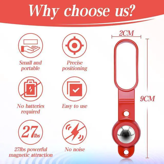 Multi-Functional Tool for Home and WorksiteBeyond finding studs, this magnetic tool retrieves dropped screws, pulls metal objects from tight spaces, and even doubles as a tool hook. Ideal for hanging decorations, mounting heavy items, or organizing your workspace, its a versatile addition to any toolbox.