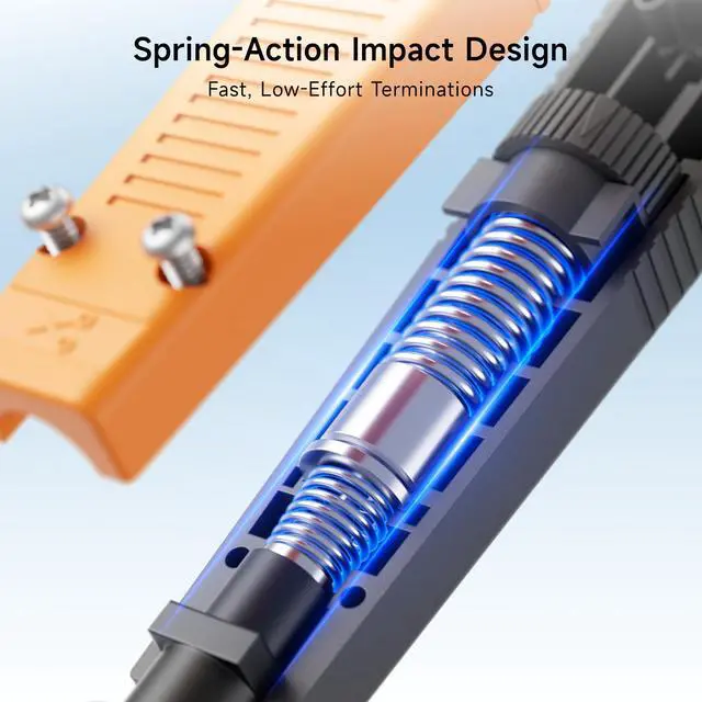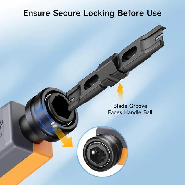 • Removable & Secure Locking Blade: The impact-style Ethernet punch down tool uses a removable 110 blade with a twist-and-lock design for quick blade changes and secure retention. The blade groove precisely aligns with the handle detent (locking ball) to help prevent loosening during use and ensure stable, consistent punchdowns.