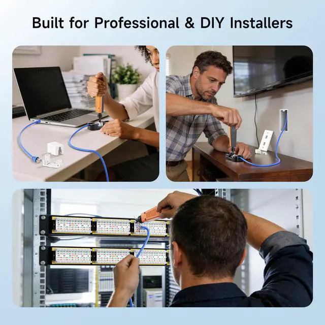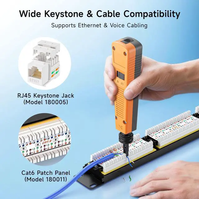 • Wide Keystone Compatibility: This keystone jack punch down tool is compatible with Cat 5, Cat 5e, Cat 6, Cat 6A, Cat 7, and Cat 8 Ethernet or voice cables. Pair it with a keystone jack punch down stand for a stable and secure installation.