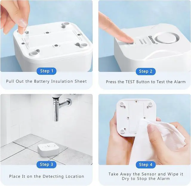 Loud 100dB Water Alarm Leak Detectors - Each water sensor alarm leak detector features ultra-loud 100dB alarm audio which is loud enough to be heard throughout the house even if the leak happens in the basement, garages, or wine cellar. The home water detector sensor will sound once the water is detected, alerting you of water leakage to avoid flood strikes.
