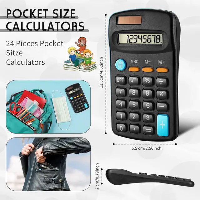 24 Pieces Pocket Calculator Small, Basic Scientific Calculators for Student 8 Digit Small Pocket Calculator Handheld Solar Battery Dual Power for School Classroom Desktop Home Office