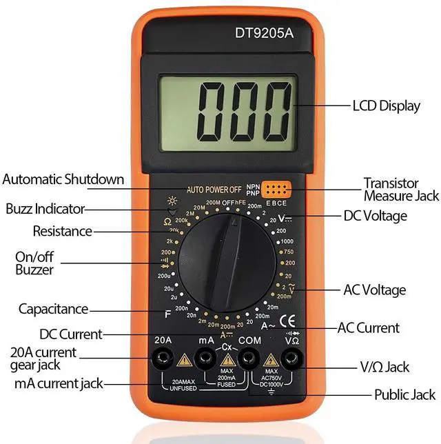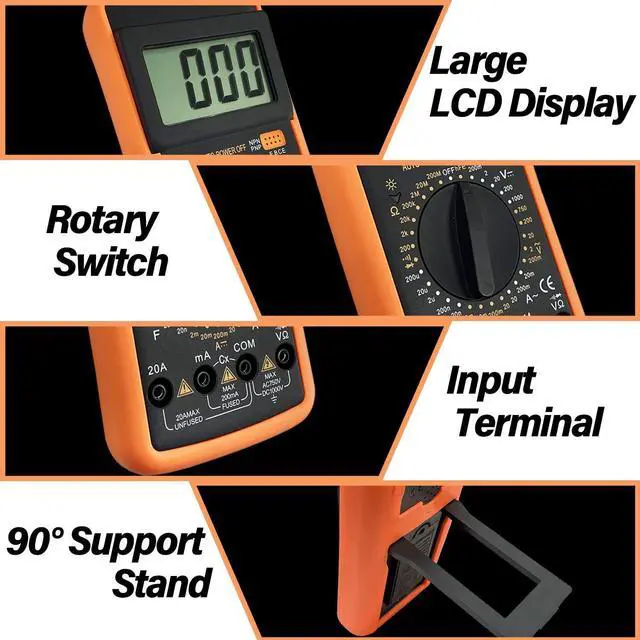 Sutekus multimeter is designed to measure AC/DC voltage, AC/DC current, resistance, continuity test, diode, transistor, frequency, temperature, capacitance and contimuity test easily and safely.