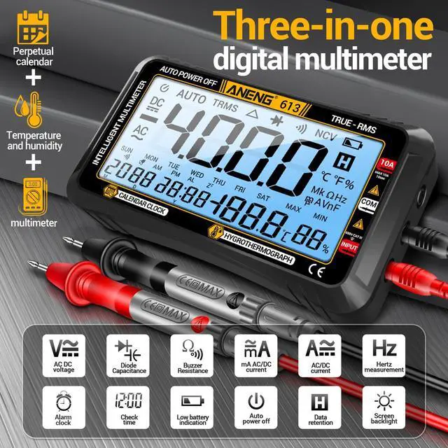 Good helper for work and life:ANENG smart digital multimeter Used to measure DC/AC voltage,DC/AC current,temperature,resistance,capacitance,frequency,duty cycle,continuity diode test,trip wire,non-contact voltage (NCV),detection,etc