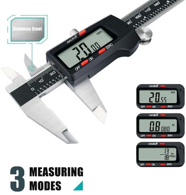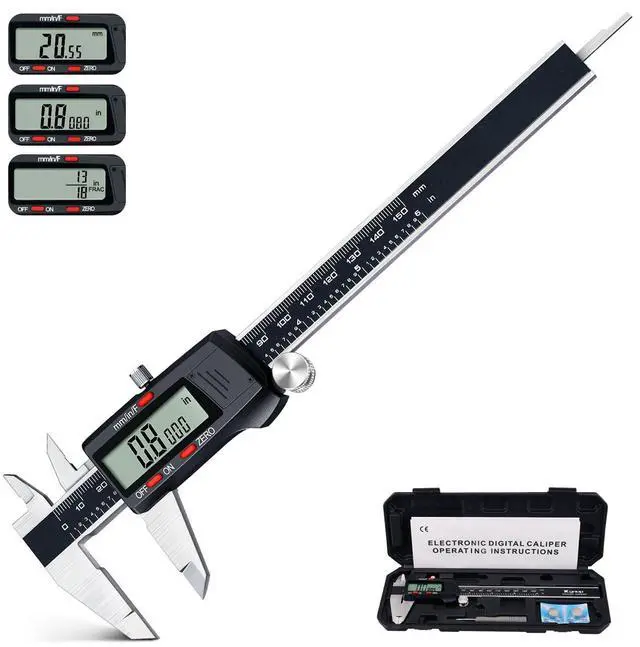 Digital Vernier Caliper, Caliper Measuring Tool, Outside Micrometer Dial Caliper with Stainless Steel, Large LCD Screen, Auto - Off Feature, Inch Metric Fraction Conversion (6Inch/150mm)