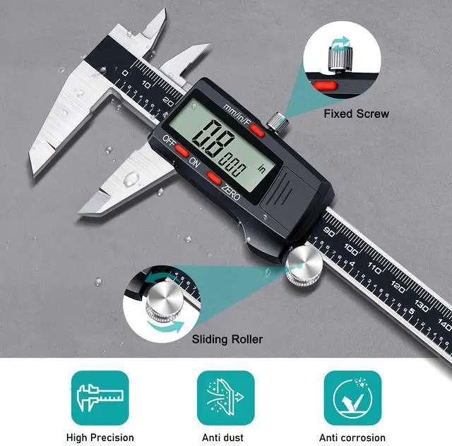 Wide Application & Auto OffThe 6 inch digital micrometer measuring tools is always used by professionals and hobbyists alike, by jewelers, hobbyists, woodworkers, DIY. Auto shutdown for saving battery after within 6 minutes if without operation.